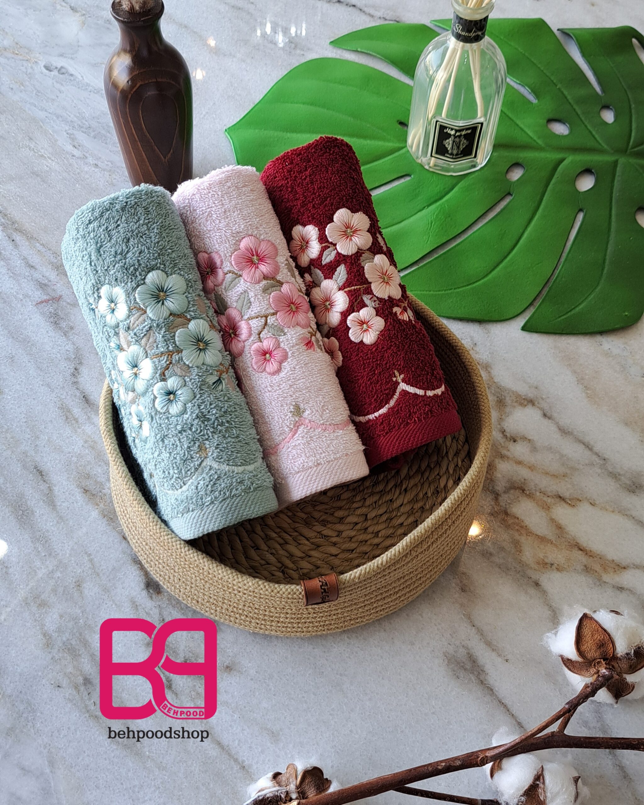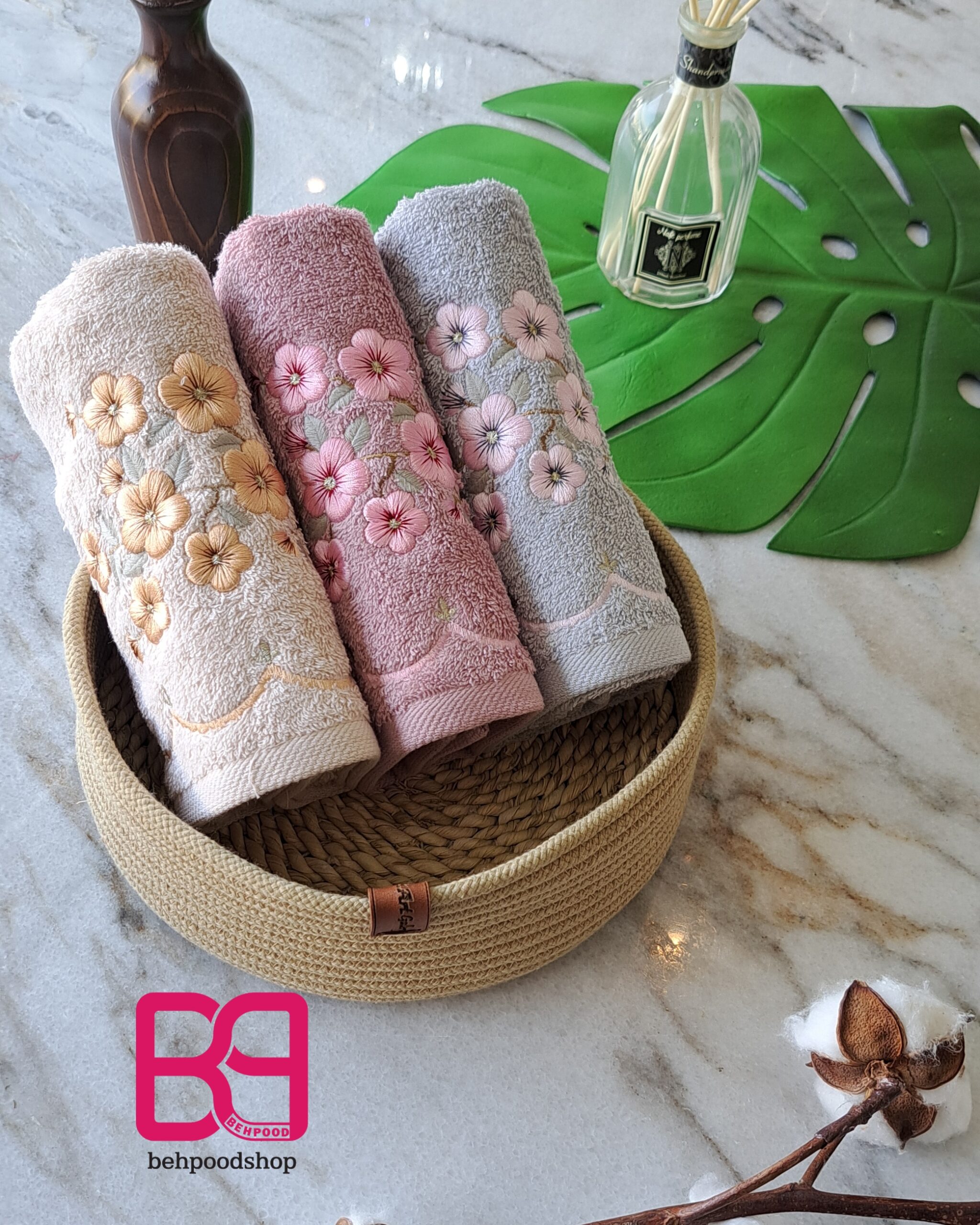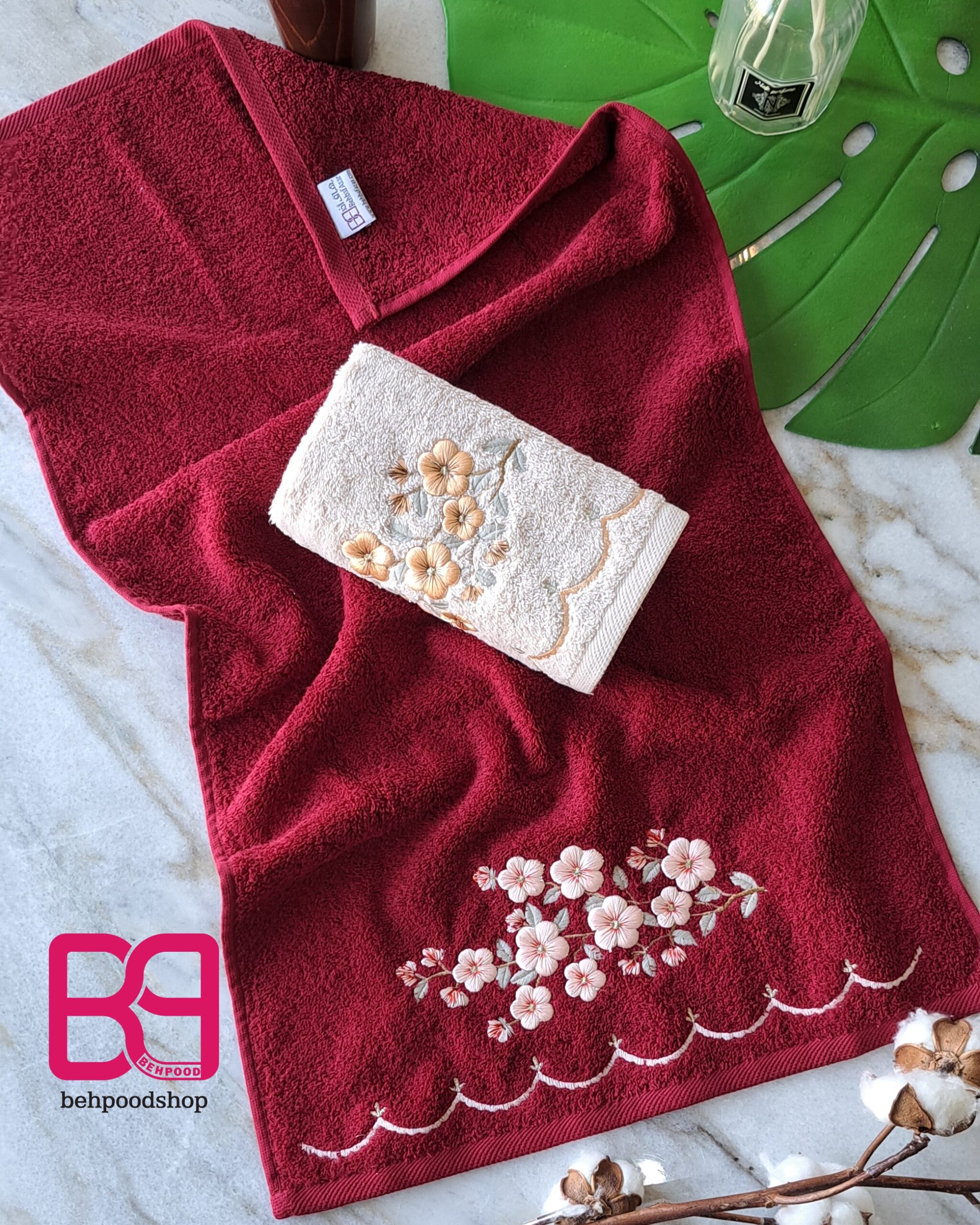 این گلدوزی ها تمام نخ پنبه هستن و خیلی نرم هستن و جذب اب بسیار بالایی دارن