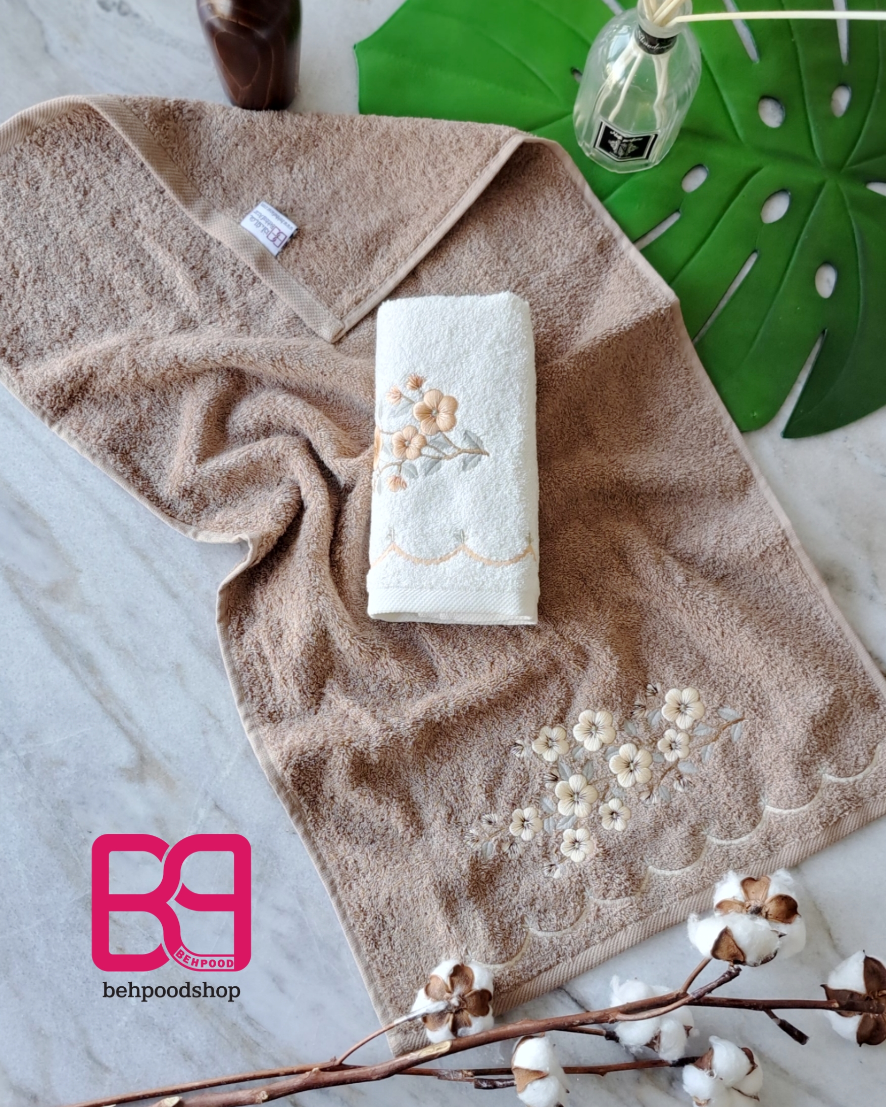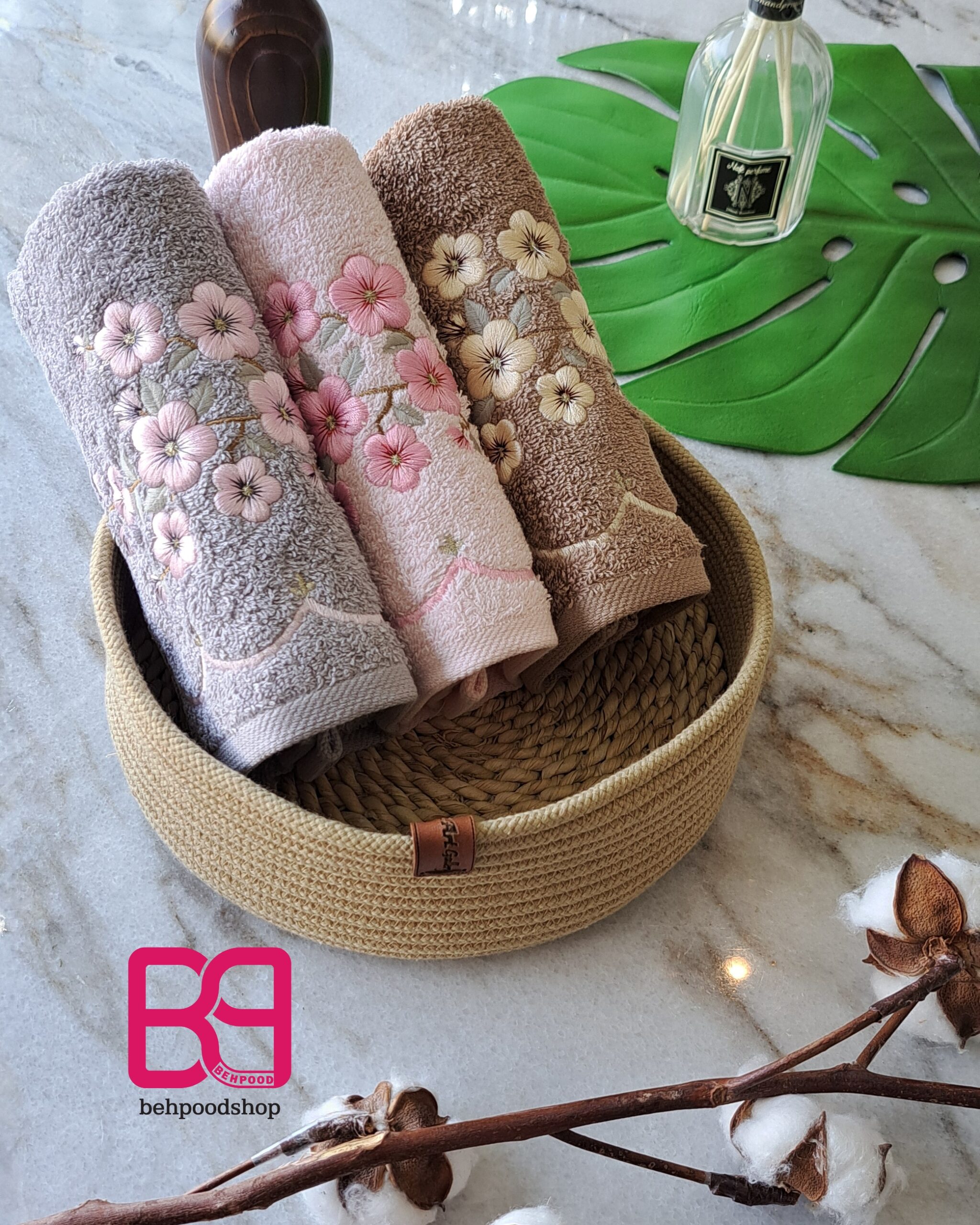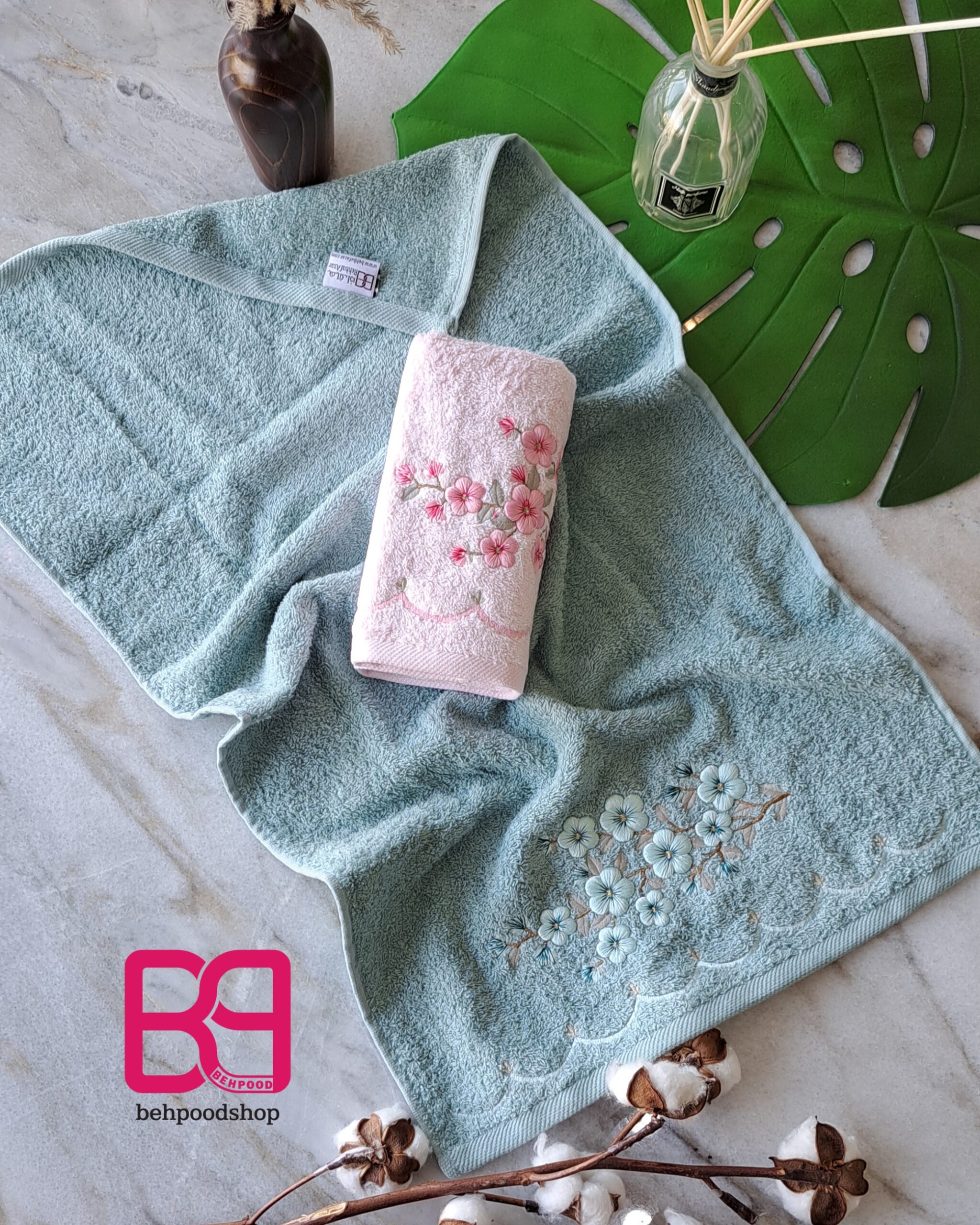 این گلدوزی ها تمام نخ پنبه هستن و خیلی نرم هستن و جذب اب بسیار بالایی دارن