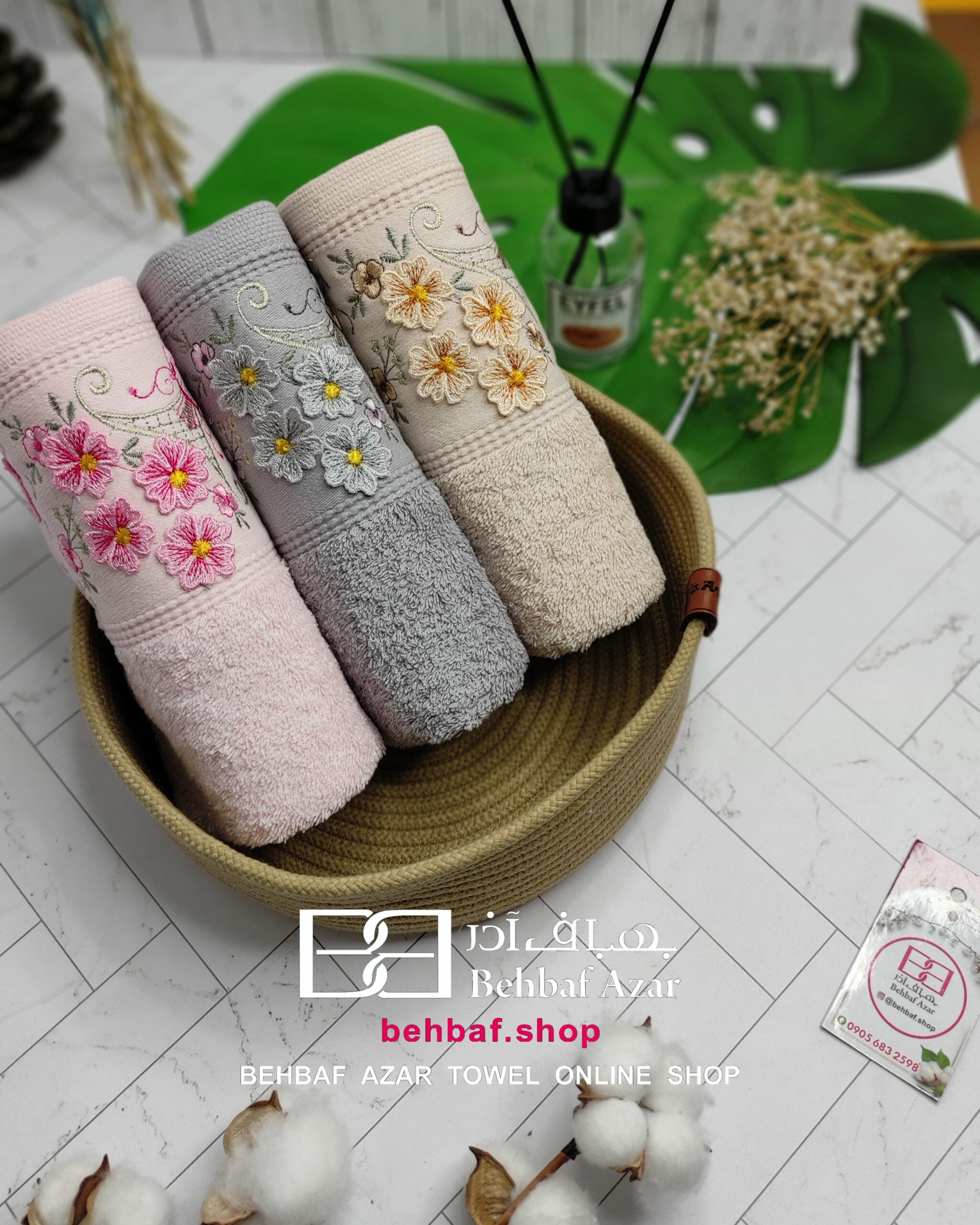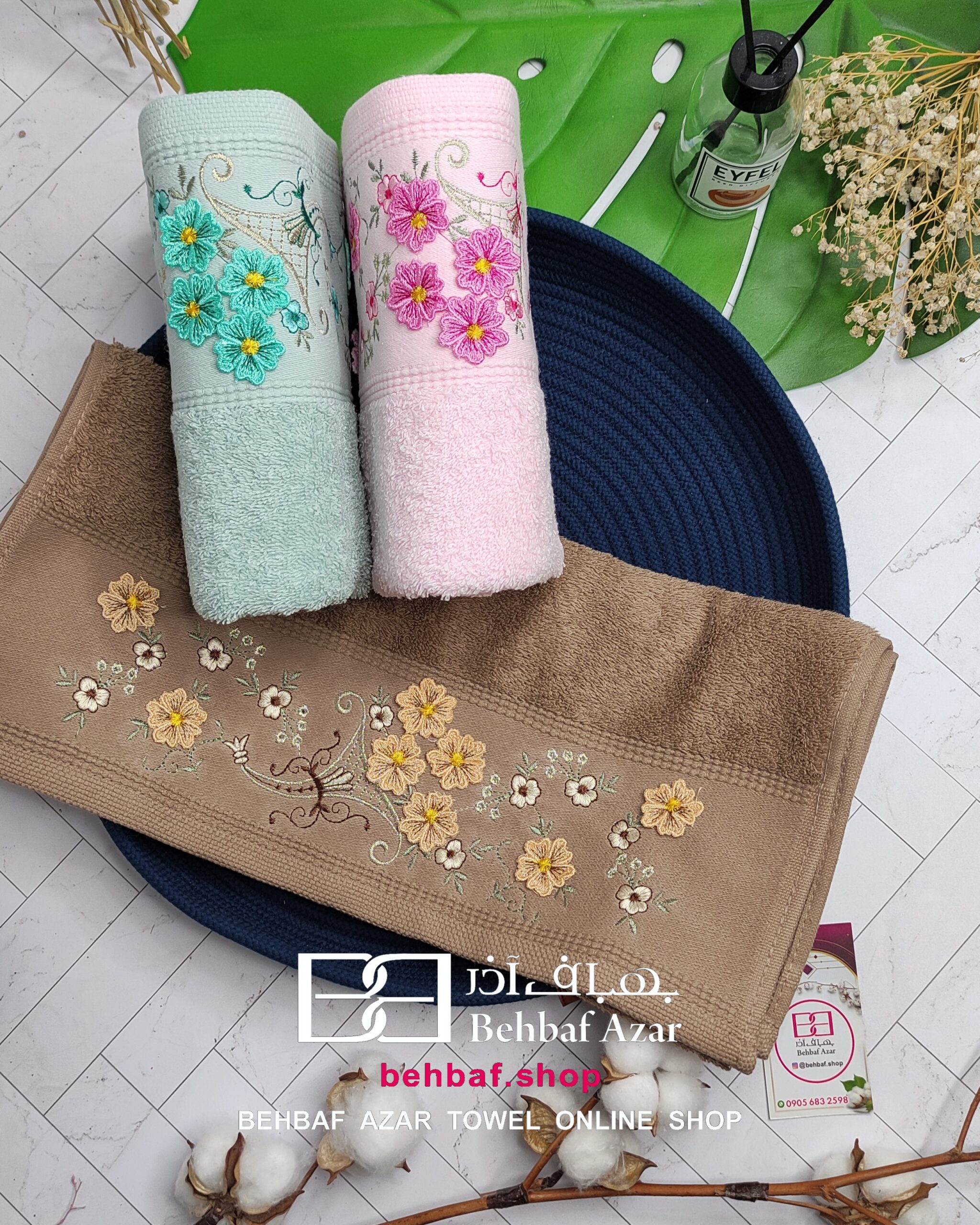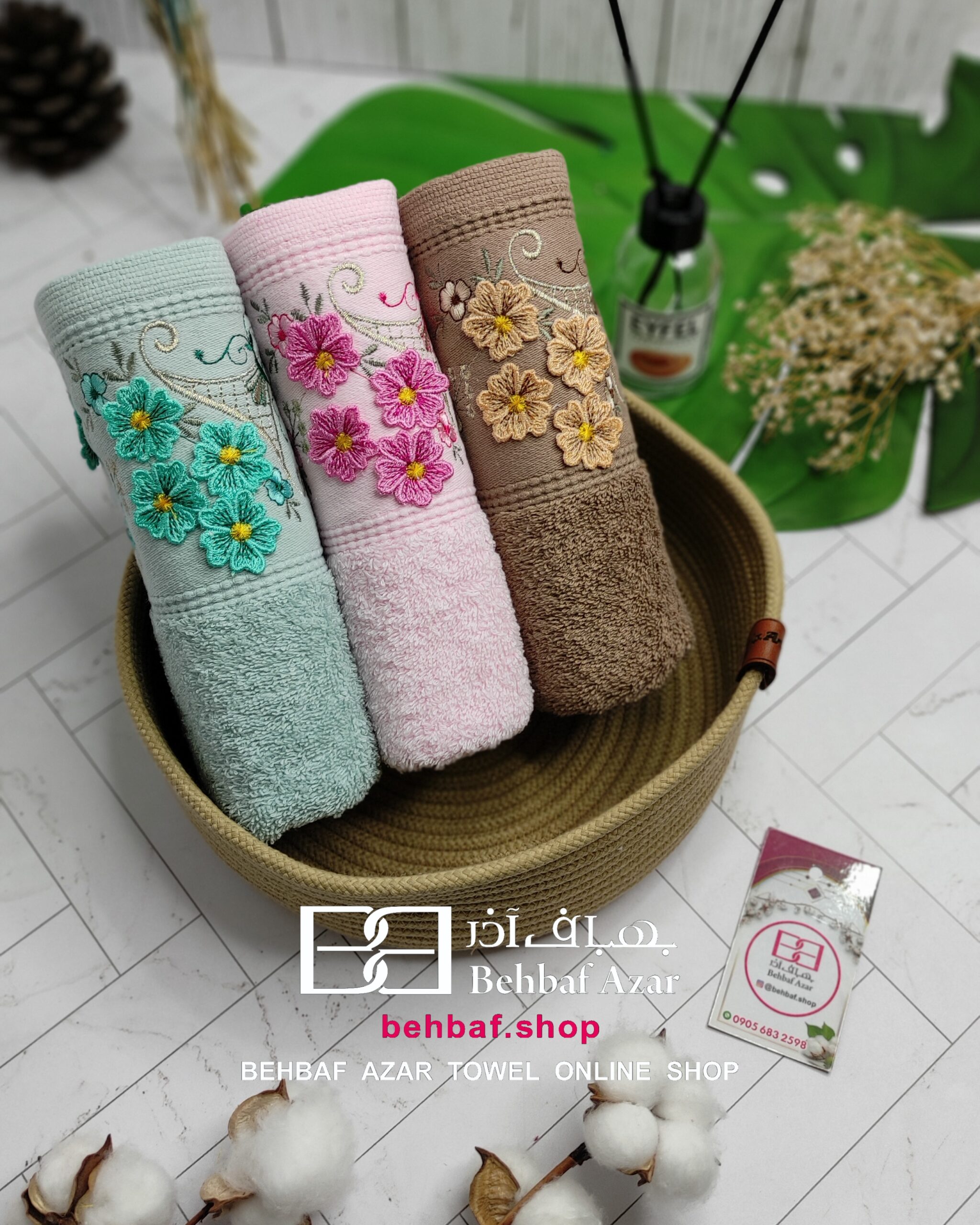 خانهحوله دستیگلدوزی حوله دستی گلدوزی 3D8بهباف اذر 40در80 سانت