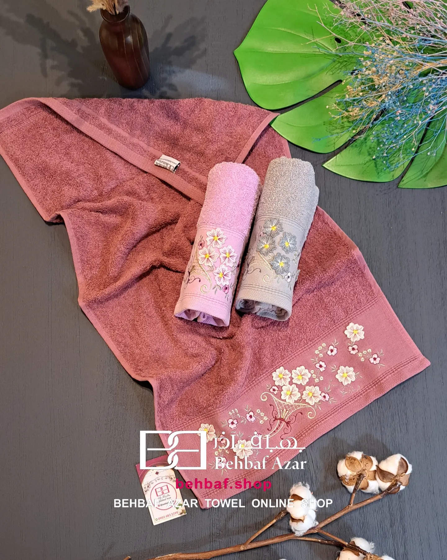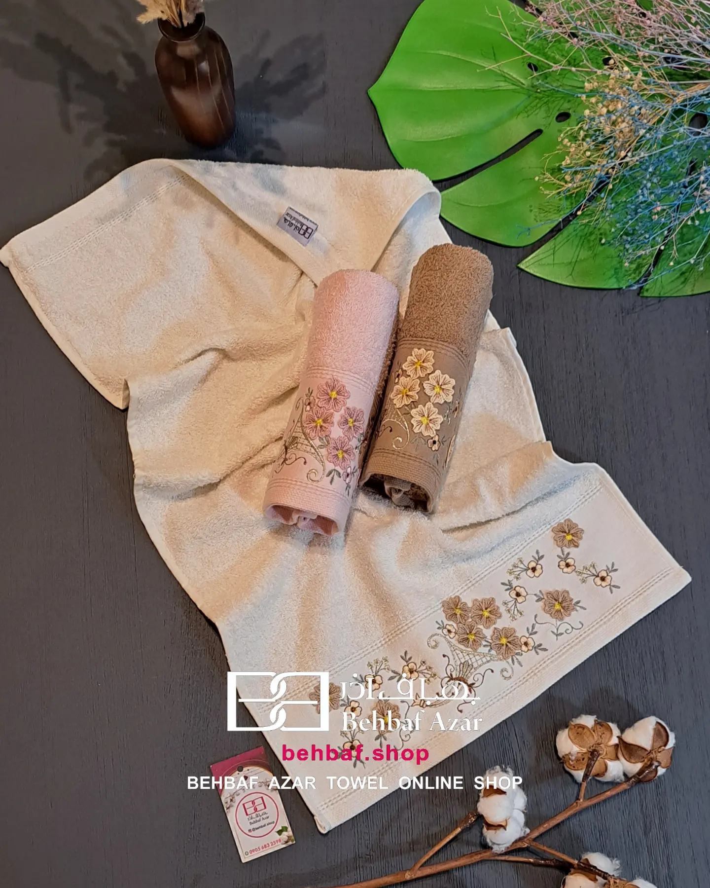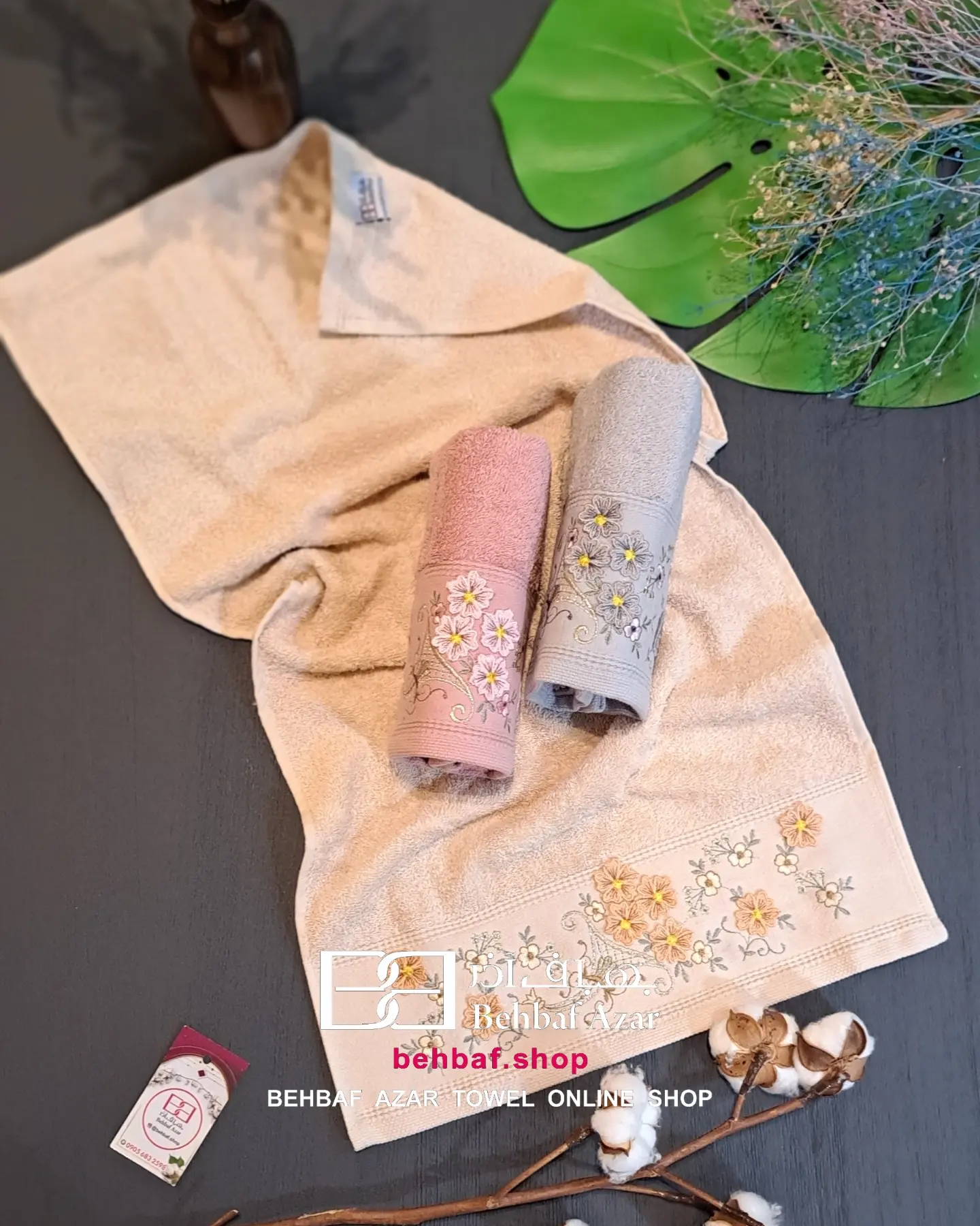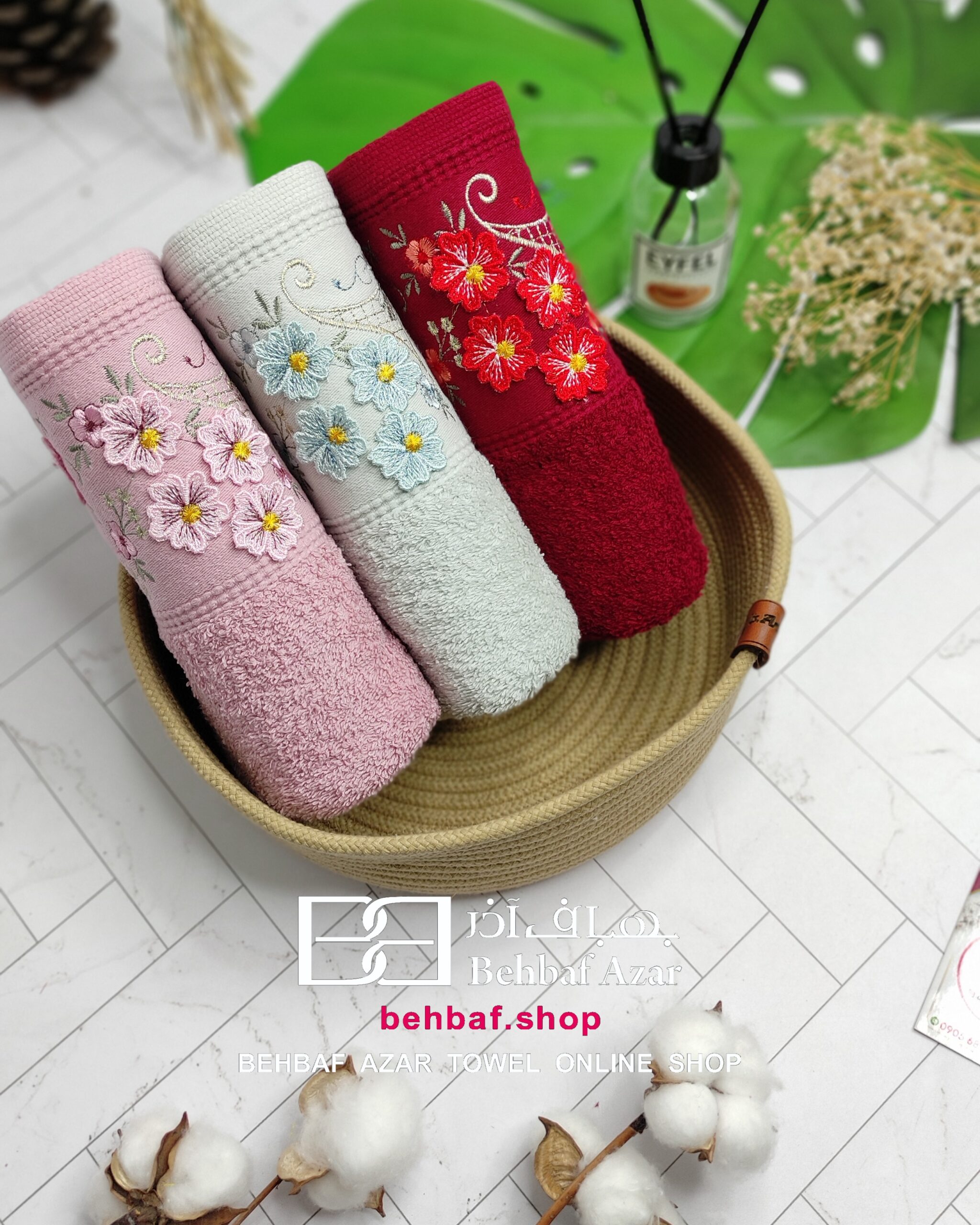 خانهحوله دستیگلدوزی حوله دستی گلدوزی 3D8بهباف اذر 40در80 سانت