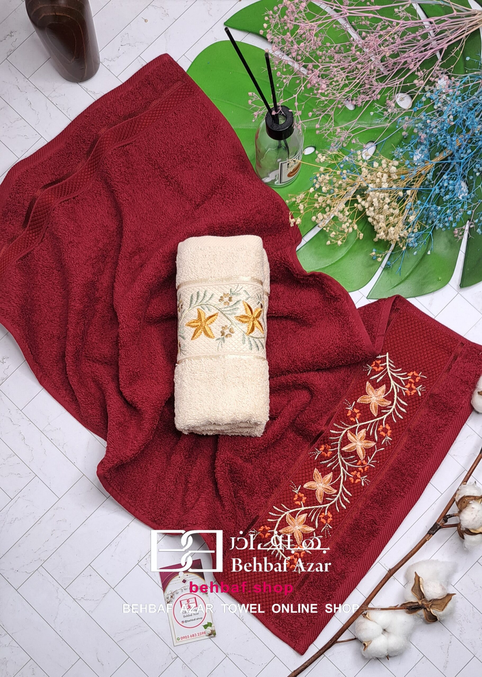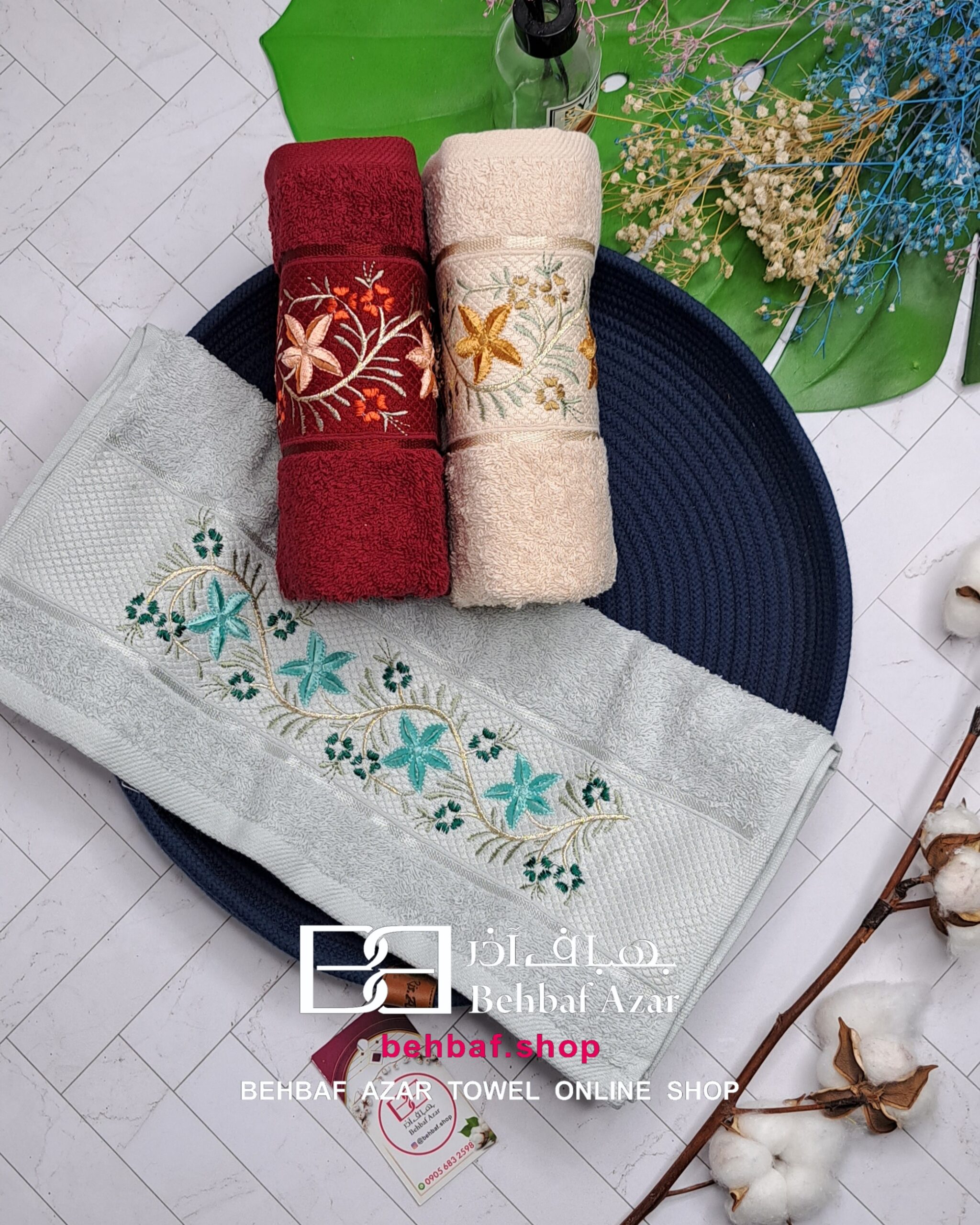 خانهحوله دستیگلدوزی حوله دستی گلدوزی 1 بهباف اذر 40در80 سانت